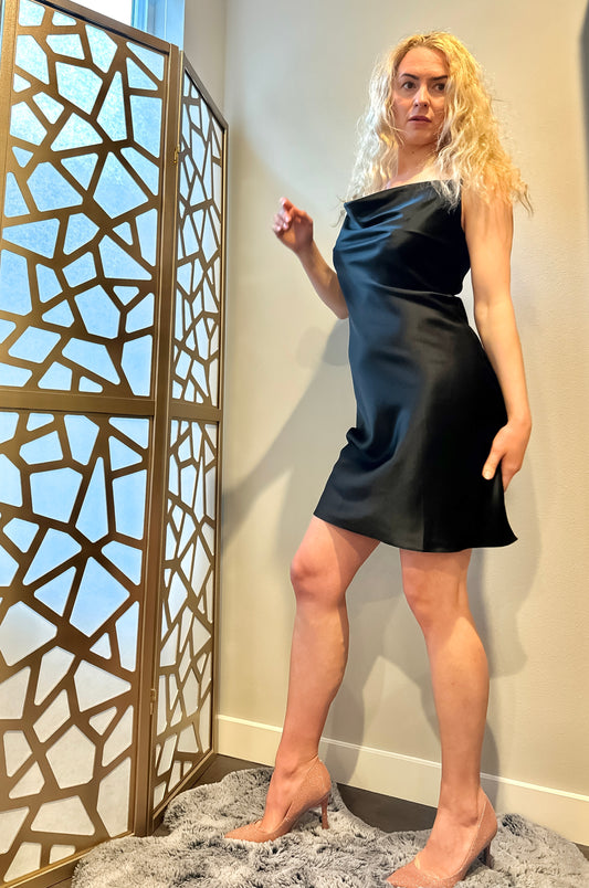 Mini Black Silk Dress with Slit (19 mm Silk)