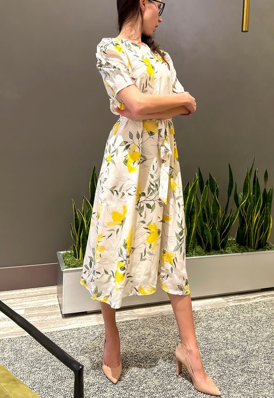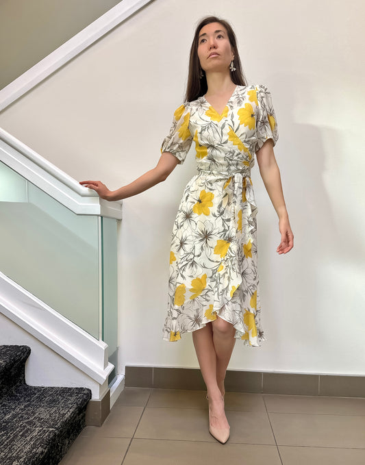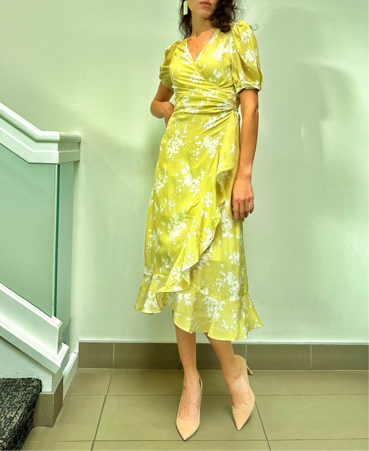 The Golden Blossom Midi Silk Wrap Dress