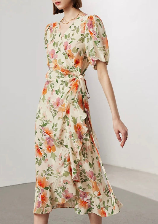 Silk Floral Wrap Dress