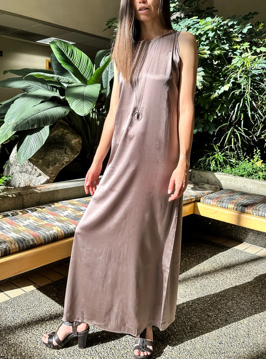 Elegant Rose Taupe Full-length Silk Dress