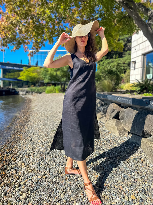 Black Linen Mid-length Sleeveless Dress
