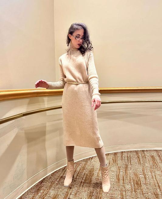 Cream 100% Cashmere Midi Dress